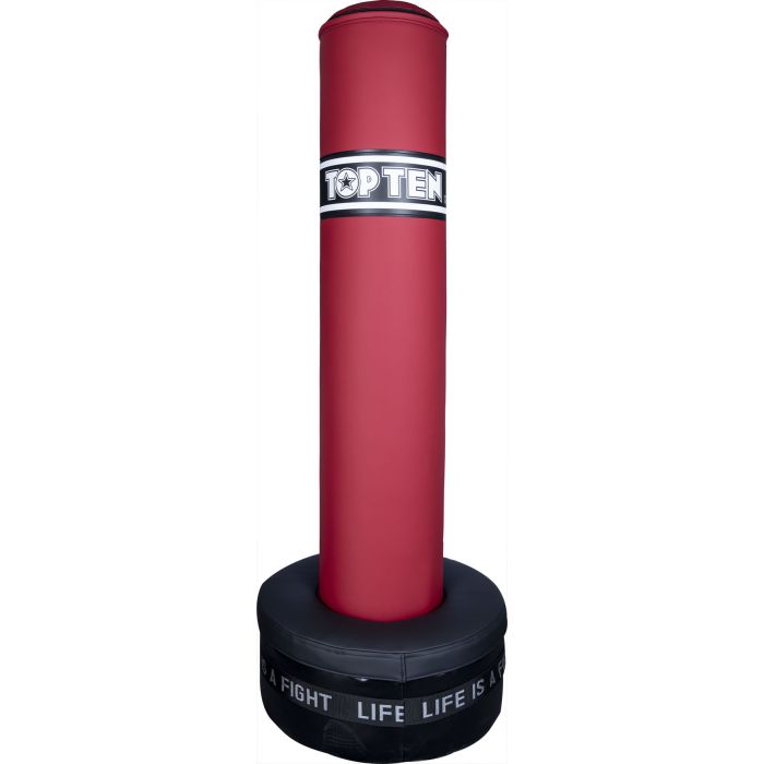 Keep fit and use the TOP TEN “Cardio” punching bag for your martial arts and endurance training. As a freestanding bag, it is a stable training partner with a length of around 170 cm and a total weight (base and punching bag) of about 60 kg. Nevertheless, the artificial leather punching bag can be easily unscrewed via the hook and loop system in the base. With the “Cardio,” you get a flexible grappling opponent for floor exercises and throwing and lifting techniques. The “Cardio” freestanding bag is 100% made in the EU and thus contributes to the stabilization of the economic area. Furthermore, short transport routes ensure the security of supply and protect the environment.