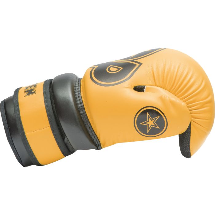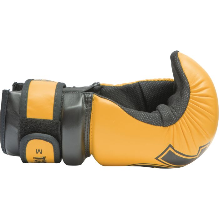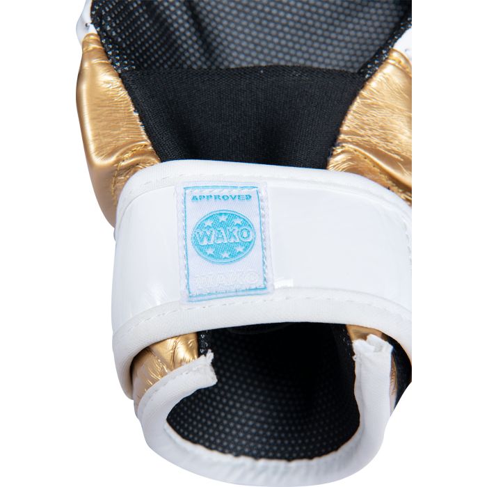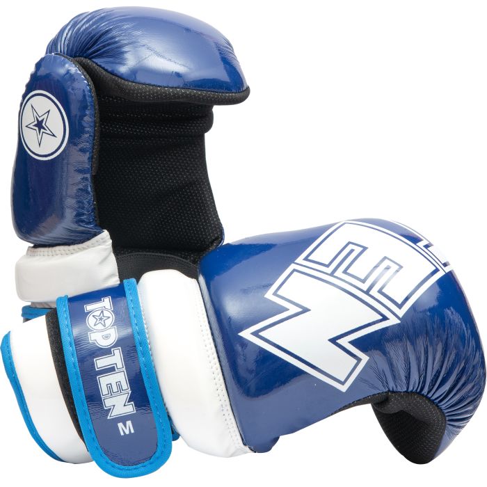 Treat your hands to an extra portion of safety in Pointfighting and wear the TOP TEN Pointfighter “Glossy Block.” The gloves with open palms have fantastic padding made of PPS foam, an artistically designed cover made of shiny synthetic leather. The “Glossy Block” secures the sensitive wrist area with an additional protective ring. TOP TEN ensures a perfect hold of your Pointfighter with a strong hook and loop fastener and an elastic rubber band. Gripline and sweat-wicking ASL inner lining successfully round off the wearing comfort of the protective equipment.