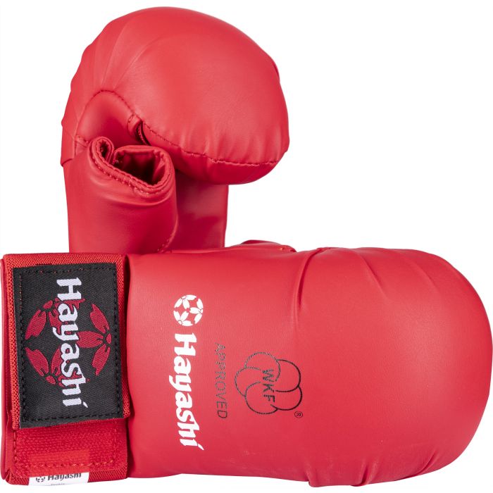 The Hayashi “TSUKI” karate fist guards with thumbs bring a plus in safety. The competition gloves, labeled by the World Karate Federation, correspond in design to model #237 but have a unique thumb guide. This effectively prevents kinking or stabbing with the thumb. Of course, the curvature of the padding should not be missing, as this guides the hands in the ideal stroke position. Equipped with hard-wearing padding made of animal-friendly synthetic leather, the “TSUKI” are also unbeatable regarding sustainability.