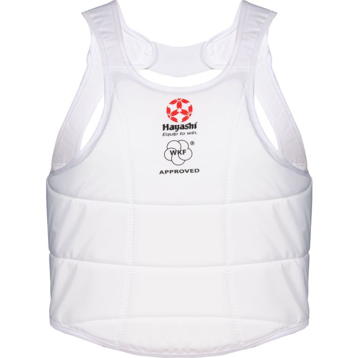 Not everyone has a clean slate, but it should be included in Kumite Karate sport. With the Hayashi protective vest, you get a lightweight safety tool for your upper body. The divided protective surface lies flat over the chest area and perfectly absorbs the energy of punches and kicks. The protective vest surprises with its simple yet particularly effective design. Soft elastic straps ensure that your protective equipment fits comfortably and makes the wearing comfort of the WKF-labelled equipment unique.