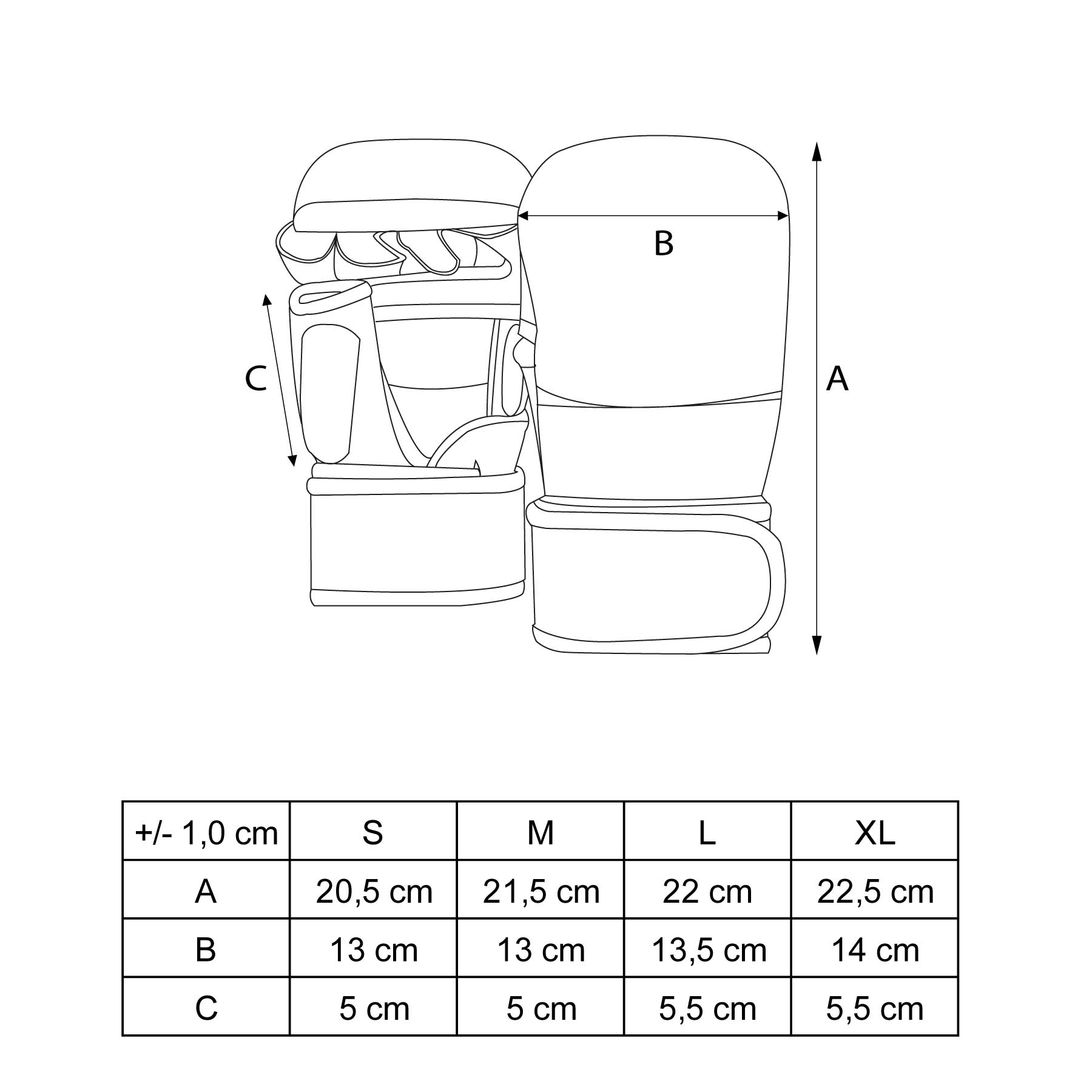 Prendi il successo nella MMA nelle tue mani e ottieni i guanti da competizione TOP TEN MMA Pro “Competitor.” Il taglio dei guanti “Competitor” è appositamente adattato alle esigenze delle arti marziali miste. Hanno una presa super morbida e sono naturalmente traspiranti come i guanti in pelle genuina. Le aree del palmo e delle dita sono aperte. Una presa salda è quindi garantita nei “Competitor.” L’imbottitura divisa sulla mano assicura sicurezza a te e al tuo avversario. Il forte polsino con velcro offre una buona presa e, allo stesso tempo, stabilizza l'area sensibile del polso.