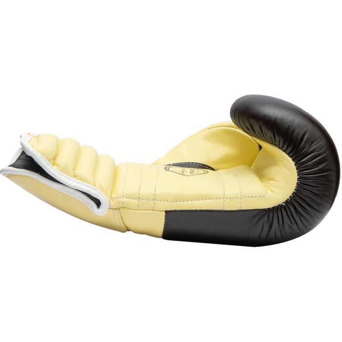 Il modello vintage ha combinato guantoni da boxe classici con un artiglio per prepararti come allenatore a tutto. La miscela fa chiaramente la differenza con i guanti da boxe TOP TEN Coach “Heritage Focus”. Un’anima in schiuma IMF di alta qualità ti offre un’eccellente zona di protezione, mentre le proprietà naturali della pelle bovina garantiscono un clima equilibrato all’interno. Il pollice è fissato con una fascia in modo che non possa ferirsi colpendo il sacco. Un polsino elastico offre una buona vestibilità ai guanti da boxe Coach “Heritage Focus” in marrone vintage, anche senza chiusura in velcro o lacci.