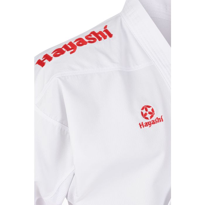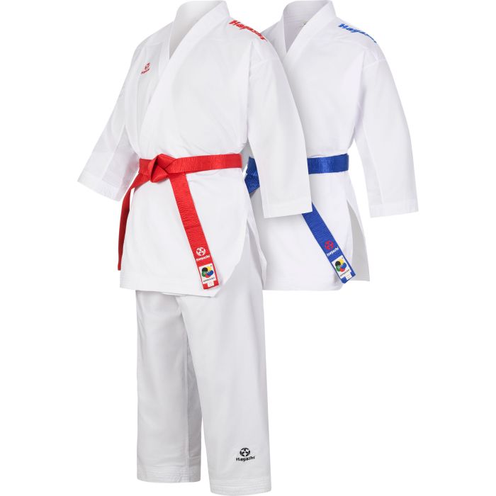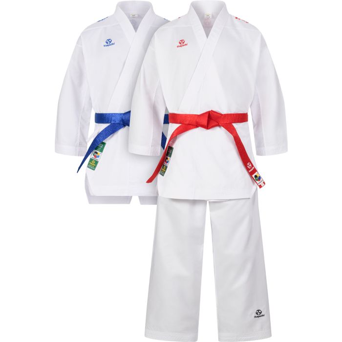 HAYASHI – Green Karate-Gi Set “Premium Kumite Competition” (WKF approvato) con ricamo blu e rosso