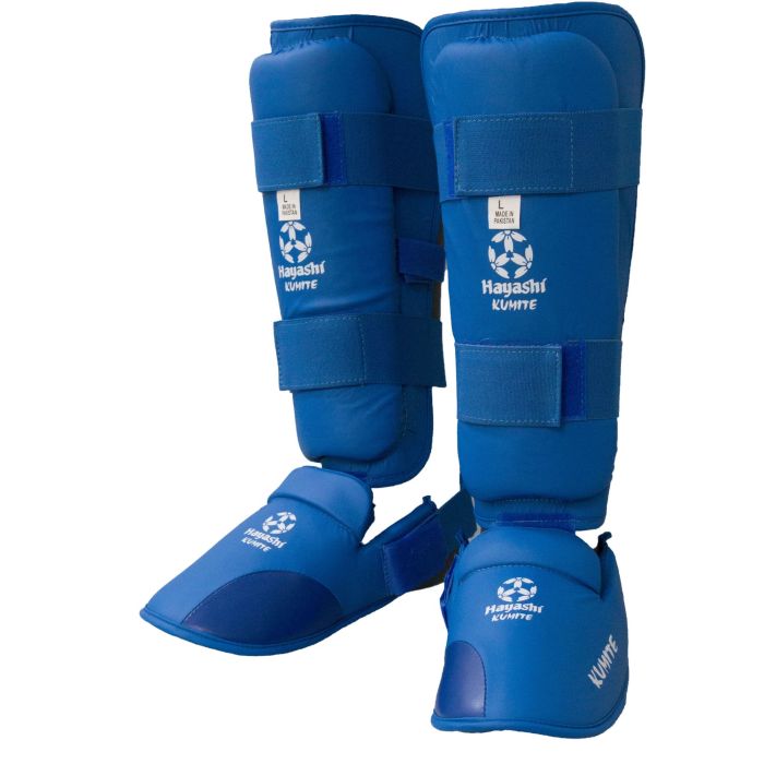 Non correre rischi inutili; acquista le protezioni per tibia e collo del piede di Hayashi per il tuo allenamento di karate Kumite. Entrambi gli elementi protettivi possono essere indossati singolarmente o utilizzati come set. La protezione per lo stinco è collegata alla protezione per il collo del piede con una forte chiusura a strappo, creando un pacchetto di sicurezza antiscivolo e ammortizzante per il tuo allenamento di karate. Il guscio esterno in pelle sintetica è molto robusto e progettato per un uso frequente. La vestibilità anatomica delle protezioni per stinco e collo del piede di Hayashi garantisce che siano comode da indossare.