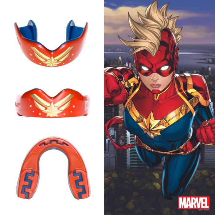 Con il paradenti “Marvel” di SAFEJAWZ, avrai le forze dei tuoi supereroi preferiti. Che sia Wolverine, Hulk, Deadpool o altre icone Marvel, la tua sicurezza è la loro massima priorità. La doppia costruzione a strati del modello Extro funge da modello per il paradenti “Marvel” e protegge in modo affidabile denti e mascella.