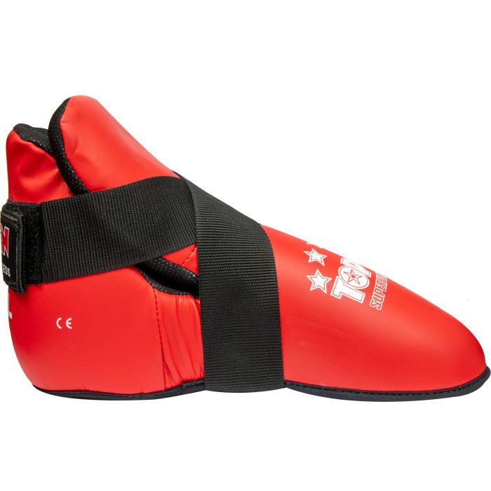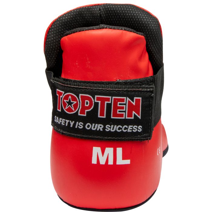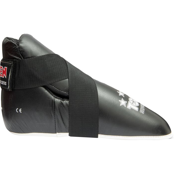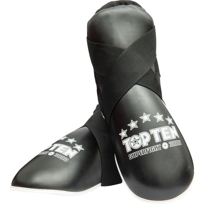 Le protezioni per i piedi “Superfight 3000” sono state sviluppate specificatamente per le tecniche di combattimento nella kickboxing e nel Taekwon-Do. I protettori soddisfano elevati standard di sicurezza grazie alla copertura traspirante in vera pelle e all’imbottitura in schiuma PPS ammortizzante. La chiusura a strappo e gli occhielli elastici per le dita dei piedi garantiscono una buona tenuta. Grazie alla suola aperta del piede, nei protettori per piedi “Superfight 3000” hai un controllo assoluto del terreno su pavimenti di materassini e ring. Affidati al miglior supporto e lasciati aiutare da TOP TEN a iniziare.