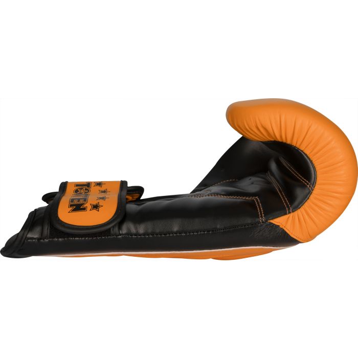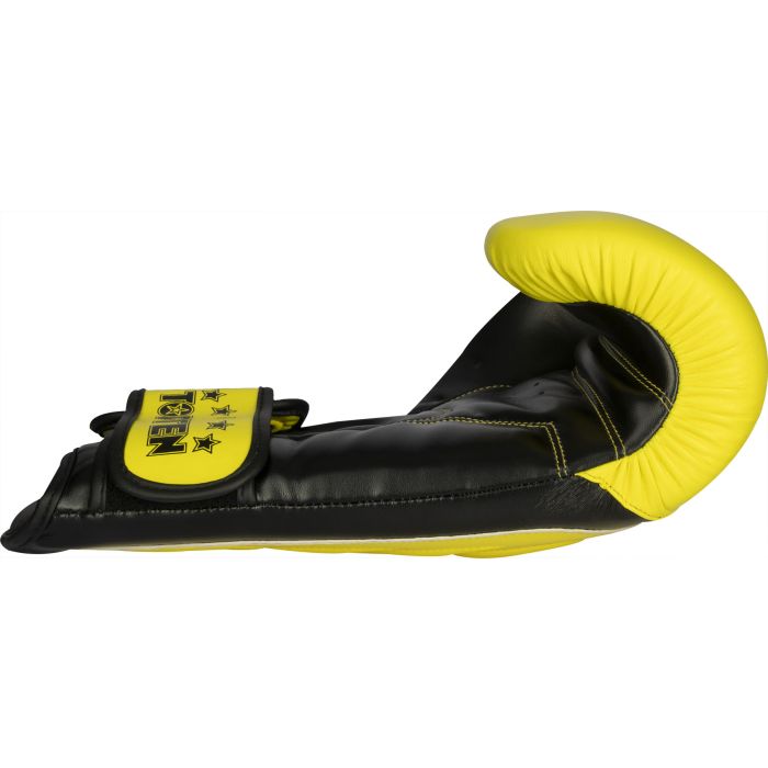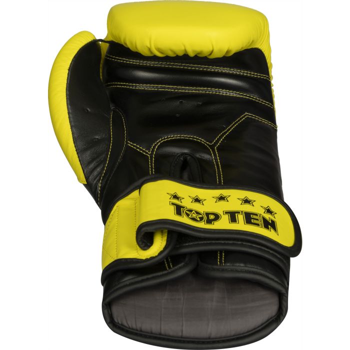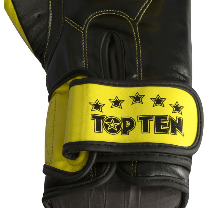 Con i guanti da sparring TOP TEN “Hero”, farai colpo. Anche a prima vista, i guanti da boxe con l’imbottitura rialzata sulla parte esterna della mano sono qualcosa di molto speciale. Una volta indossati, sentirai immediatamente i benefici. Il mix di materiali di robusta pelle artificiale nell’area del palmo e vera pelle sulla superficie di impatto conferisce ai tuoi “Hero” un potere di ventilazione di classe propria. Supportati da una fodera che assorbe il sudore, le tue mani rimangono asciutte nei guanti da sparring. Con una selezione dei “Hero” da 12 a 16 once, il focus dell’allenamento può essere ridefinito ripetutamente. La schiuma a sandwich che assorbe gli impatti è inserita precisamente nel rivestimento con un lavoro manuale controllato. Grazie al polsino a strappo nell’area del polso, l’“Hero” si adatta comodamente e senza scivolare.