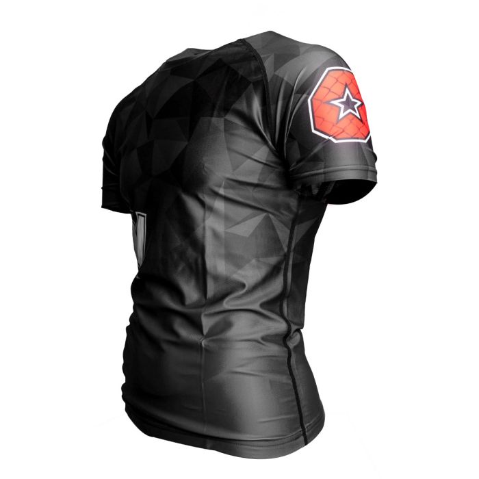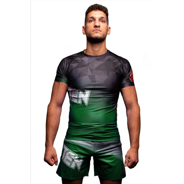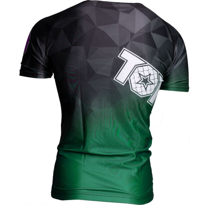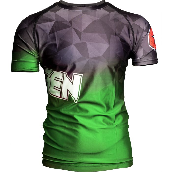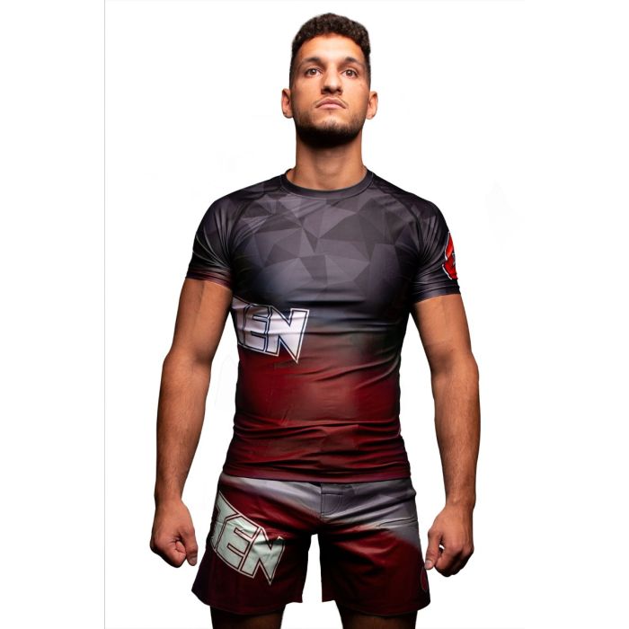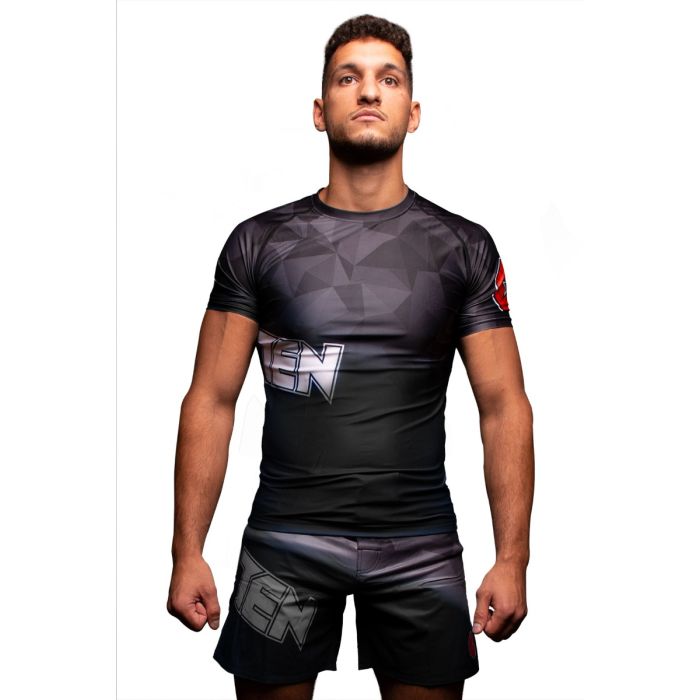 Ottieni il supporto ideale nell’allenamento e nella competizione con la “Prism” Rash Guard di TOP TEN. La maglietta a maniche corte è composta da un mix di materiali funzionali di poliestere e spandex e sorprende con un supporto di compressione di prima classe. Nonostante la stretta aderenza, ti senti libero nella “Prism” e puoi muovere il busto senza ostacoli. Un colletto unico mantiene la Rash Guard in posizione senza scivolare. La stampa grafica è sublimata ad alta qualità e conferisce alla “Prism” il suo aspetto unico.