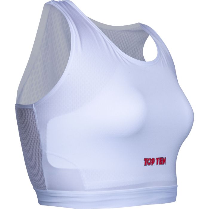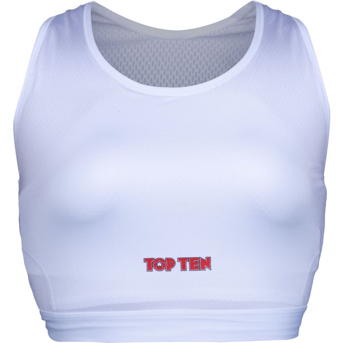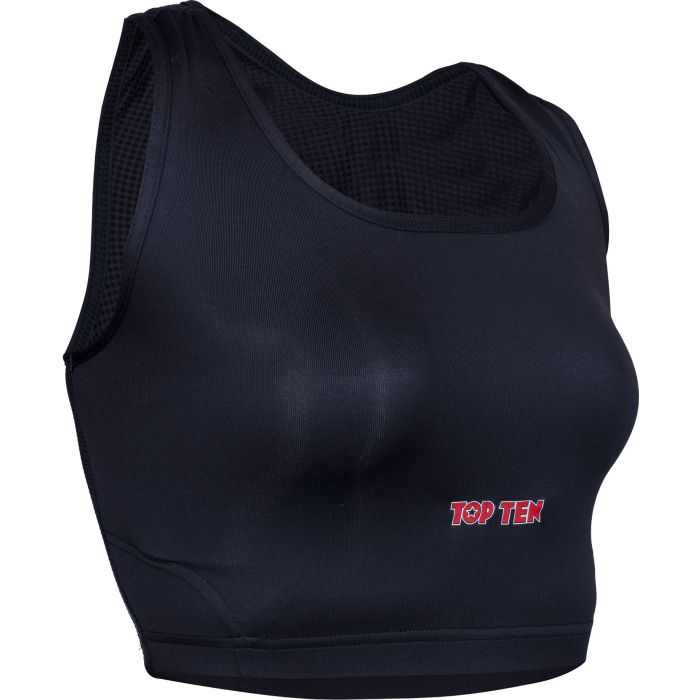 TOP TEN garantisce il massimo livello di sicurezza con il paraseno femminile “Maxi”, che include inserti rigidi in plastica. Questa combinazione di tessuto e guscio protettivo fa battere forte il cuore delle atlete di arti marziali perché comfort e sicurezza non vengono trascurati. Con il suo taglio più lungo, il paraseno femminile “Maxi” avvolge saldamente tutta la zona della parte superiore del corpo. Grazie al materiale traspirante ed elastico, ti senti comunque completamente a tuo agio e puoi allenarti con tutta la grinta. Grazie al sistema di supporto, il TOP TEN “Maxi” offre un grande sostegno in modo da prevenire efficacemente danni posturali e ai tessuti.