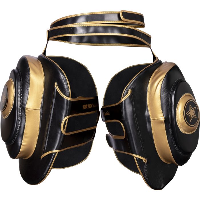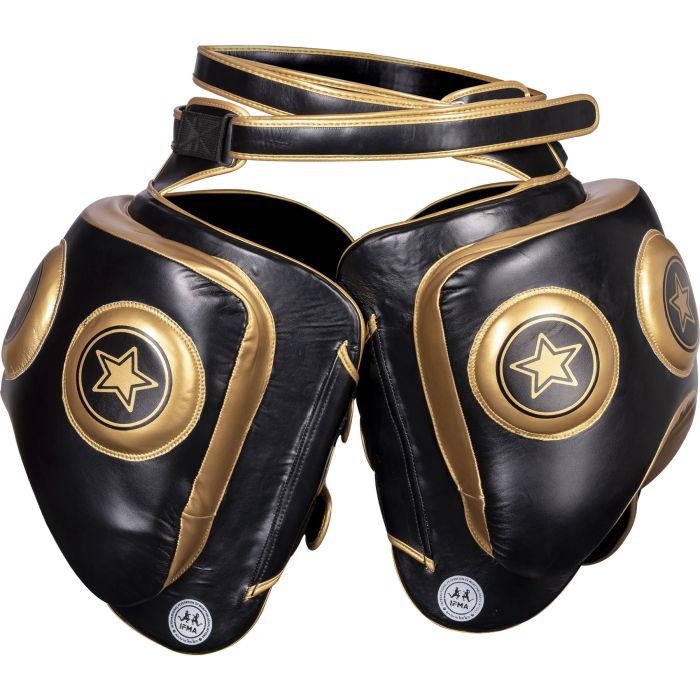 Allenarsi in condizioni competitive ti presenta sfide reali nella Muay Thai perché nessuno vuole danneggiare seriamente il proprio compagno di allenamento. Progettati per calci duri, urti e colpi, i paracosce ‘Kao’ IFMA di TOP TEN sono insostituibili nelle arti marziali a contatto pieno. Con la loro imbottitura in schiuma multistrato, parte della quale è spessa più di 9 cm, distribuiscono l’energia su tutta la superficie – per la migliore protezione su entrambi i lati. La copertura esterna in pelle artificiale resistente è progettata per durare. Grazie alla sua superficie facile da pulire, è adatta per l’uso di gruppo in palestre o scuole sportive. I paracosce IFMA ‘Kao’ si fissano sempre saldamente sulla gamba con 3 chiusure in Velcro.