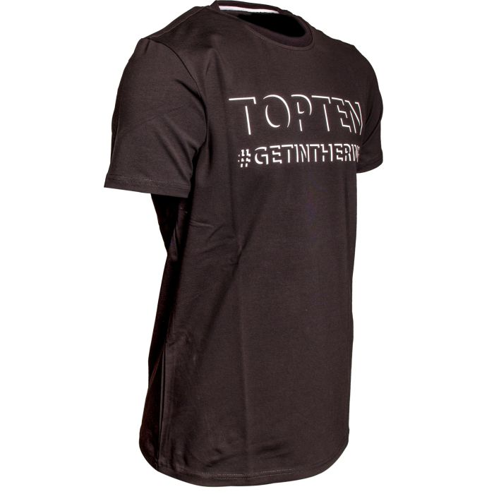 Con la T-shirt “Shadow”, TOP TEN rilancia un classico del guardaroba. Grazie alle sue fibre di cotone, assicura sempre una piacevole sensazione sulla pelle e favorisce un equilibrato bilanciamento termico. Il taglio casual rende la tua maglia “Shadow” un vero passe-partout. Indossarla sopra o sotto a un altro capo non è un problema, grazie al suo girocollo pratico e alla facile manutenzione. Il vero punto forte, però, è senza dubbio la stampa TOP TEN sfumata “Get in the Ring”. Con questa, non lascerai dubbi al di fuori del ring su quale sia lo sport che ti appassiona.