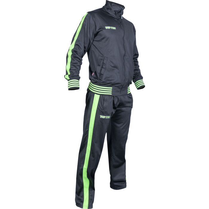 Ritorna agli anni ottanta con la tuta da jogging TOP TEN “Neon”. Il trendy completo in due pezzi composto da giacca con zip e pantaloni è realizzato in poliestere leggero e presenta applicazioni neon ad alto contrasto. Un colletto alto e morbidi polsini a coste forniscono alla giacca una protezione sufficiente contro le correnti d’aria sgradevoli. Per i pantaloni, TOP TEN si affida a una cintura liscia e comoda. Questo mantiene perfettamente il tuo “Neon” anche durante le attività piene di azione. Le zip laterali sulle gambe dei pantaloni sono ideali per un facile inserimento e rimozione. Grazie alle sue proprietà facili da pulire, la tuta sportiva “Neon” è vincente per l’uso quotidiano. Poiché non richiede una fodera interna aggiuntiva, il tempo di asciugatura è incredibilmente breve.