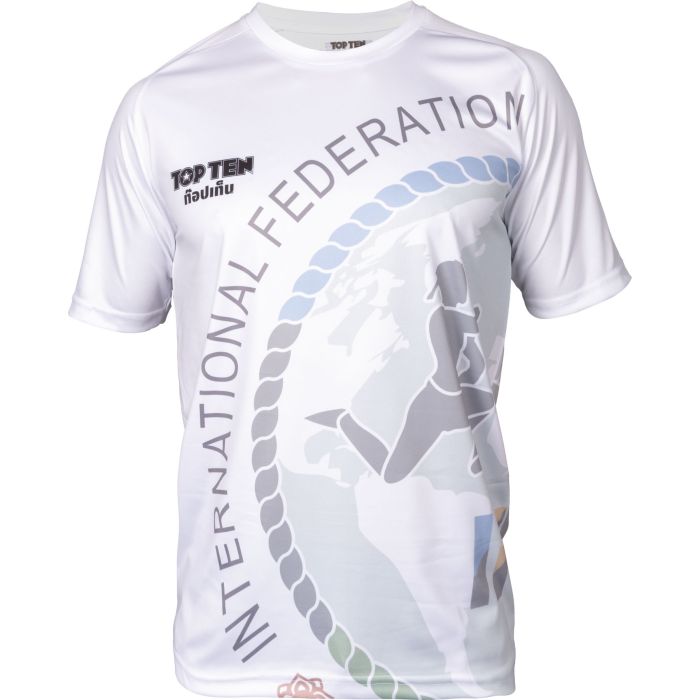 • Rinfrescati con la T-shirt TOP TEN "WAKO" realizzata in leggero materiale funzionale. La "WAKO" è stata sviluppata appositamente per il kickboxing e, con la sua etichetta WAKO, soddisfa i requisiti per gli sport da contatto leggero. Il design sublimato con effetti di stampa grafica e i polsini TOP TEN garantiscono un look accattivante.